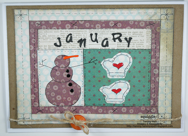 A new challenge is starting today at Squigglefly and finally it's Holley's Hobbyists time to shine! The theme for the challenge is "Button It Up". Your card can include a winter themed image that needs a coat or embellish a card with buttons. I started with the adorable image Cute Crawlers by Squigglefly's new artist, Fawn Palmer. I think I've got the buttons covered since I used actual buttons and my choice of designer paper is all about buttons! Please spend the time and see what my teammates have created and then get busy and join the challenge, it's the only way you can win!